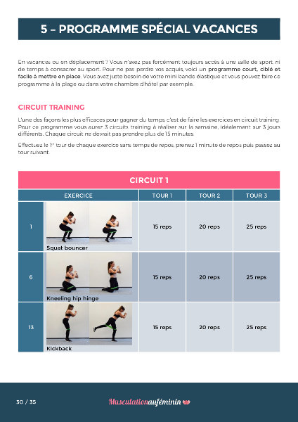 • Un programme spécial vacances, pour continuer à s’entraîner efficacement avec un minimum de matériel